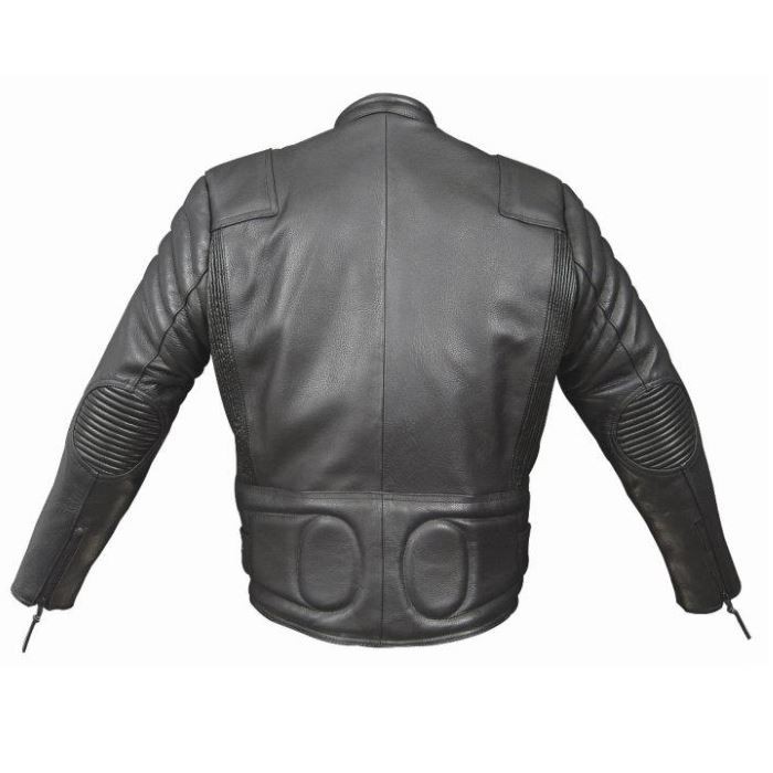 Chupa de cuero para moto con refuerzos y cremallera en la espalda para unir al pantalón. ALEX ORIGINALS.