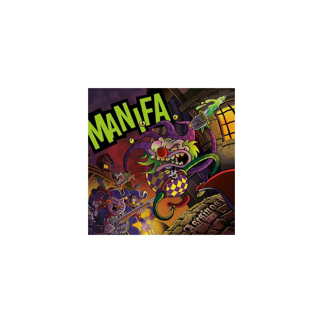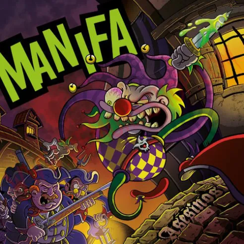 Vuelven los bufones que traen al reino las peores noticias, dispuestos a asesinar el rock and roll. Porque si este reino necesita monstruos, Manifa con gusto serán los vuestros. Mientras grita todo el populacho “que los cuelguen”, a ellos les da igual, están aquí para cumplir su misión: asesinar el rock and roll.
